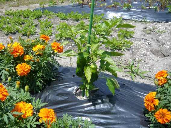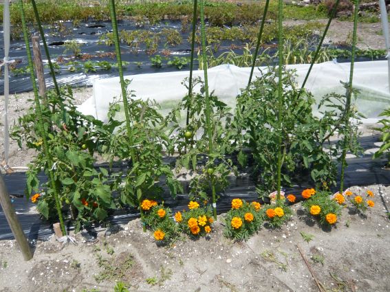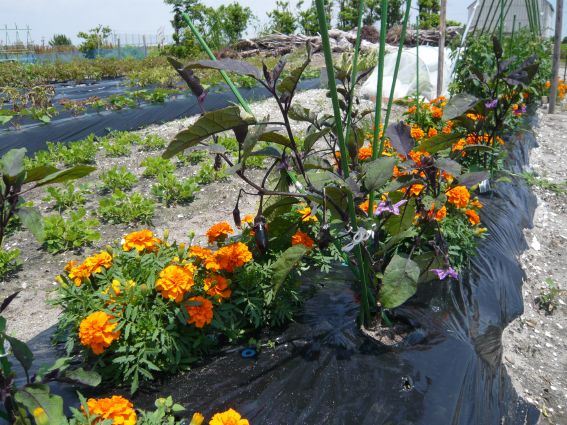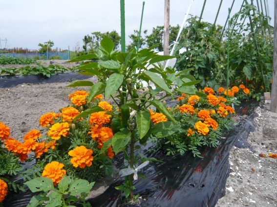ナスもやっと元気になってきました 一番元気なのはマリーゴールドです
