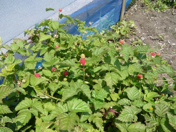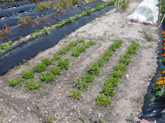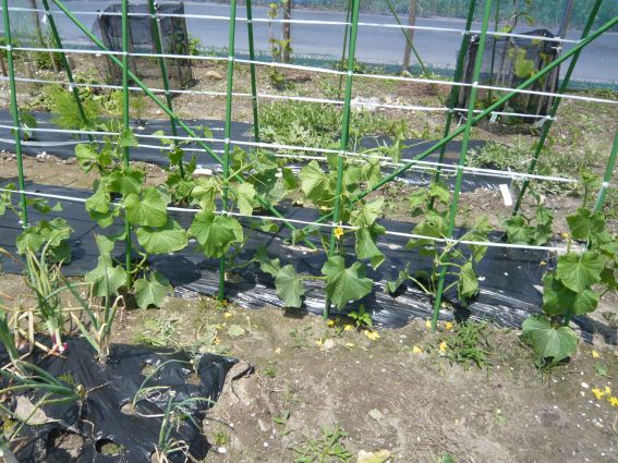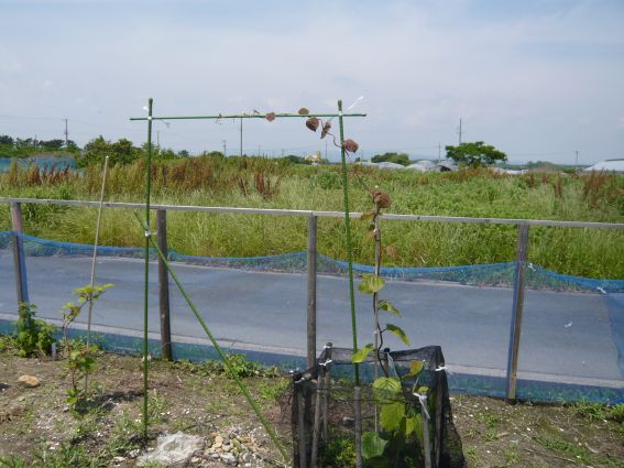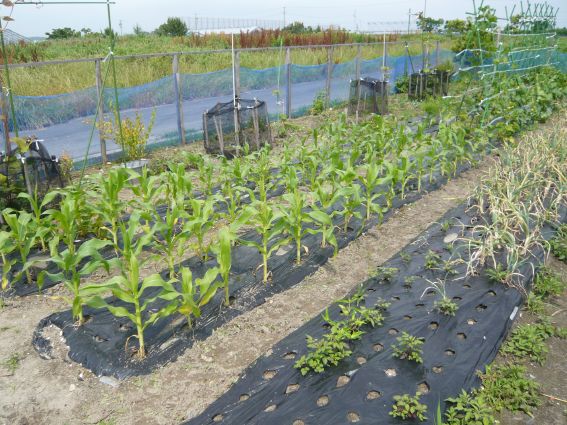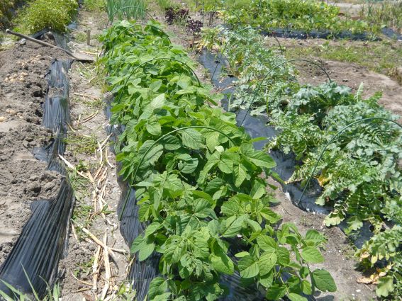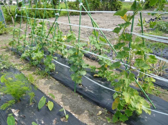 手前には生姜が植えてあります サツマイモはすくすくと育っています