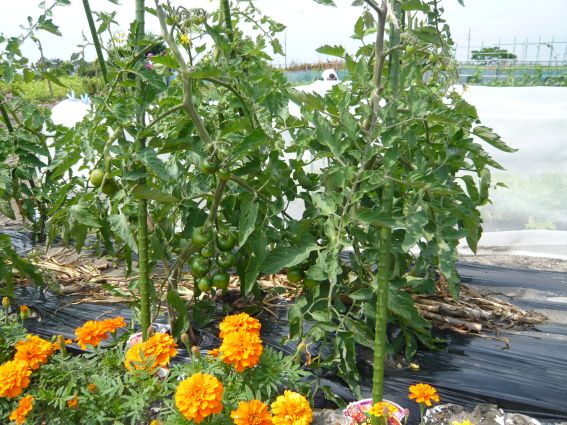 ナスが出来始めました しかしこのマリーゴールドの立派さはどうです