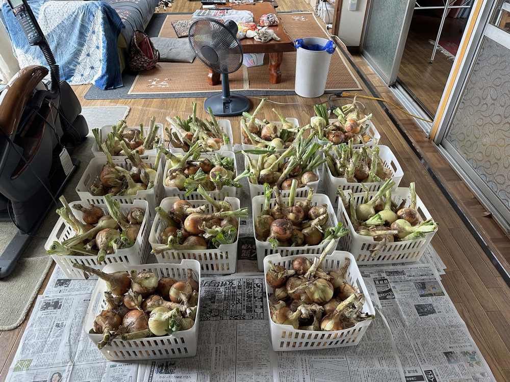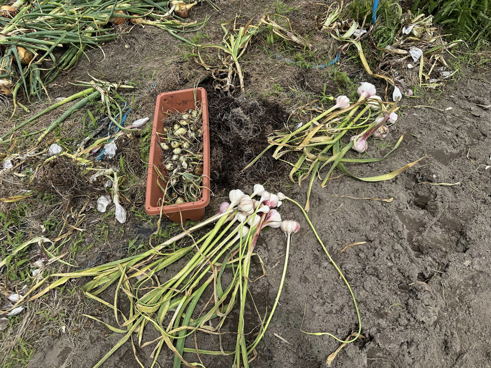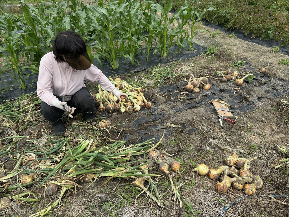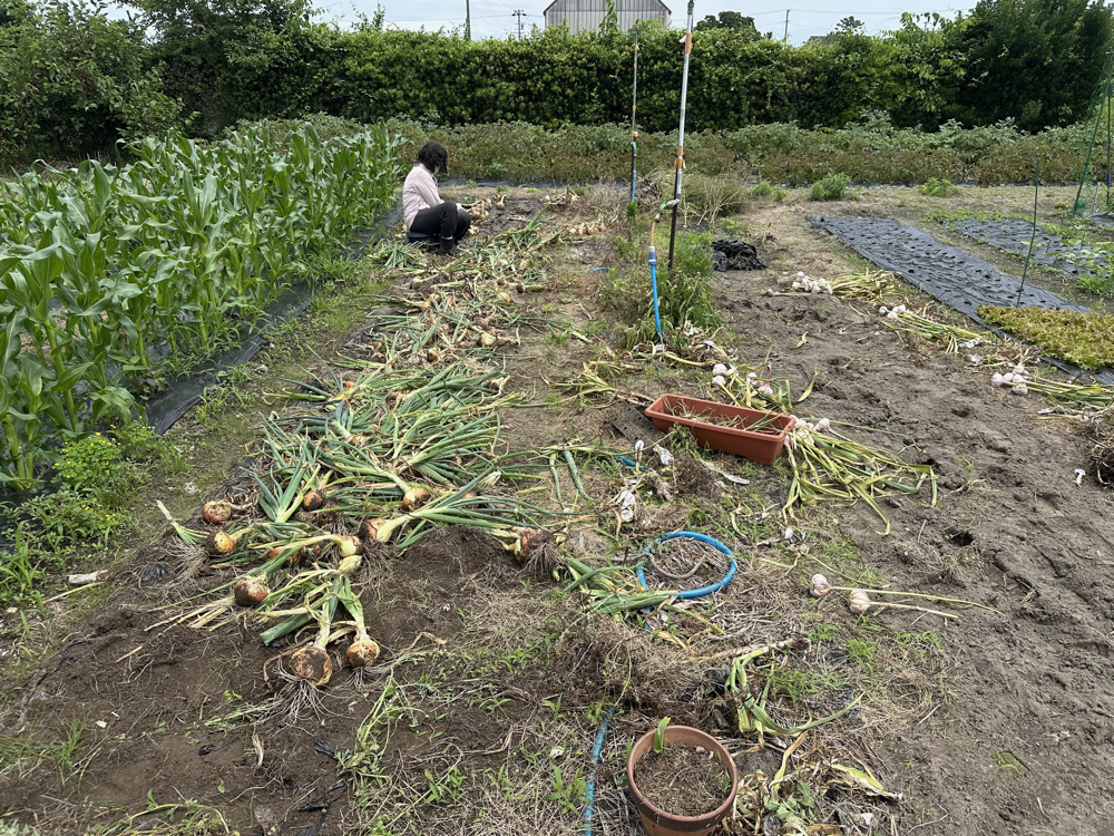マルベリーの収穫期間が短いのと、ニンニクやタマネギの収穫時期であり、また雨も降りそうでしたので今日しかないと農場にやってきました。午後にポツリポツリの雨が降り始めたのですが、何とかやるべきことはやりました。