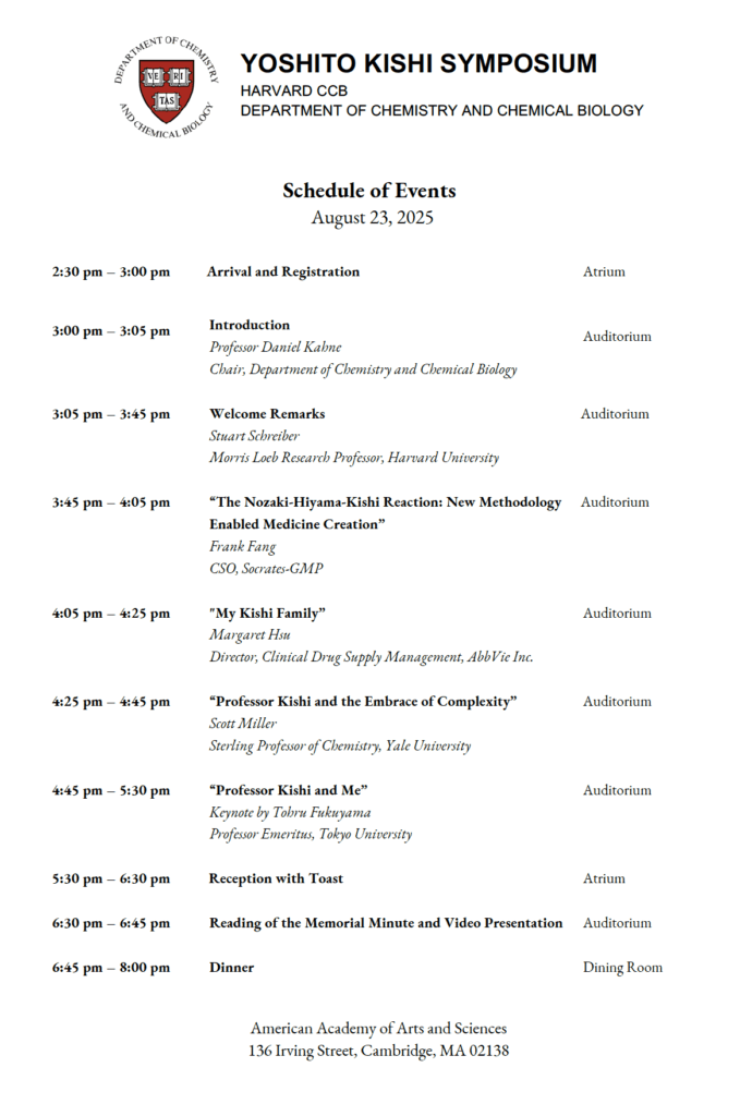 シンポジウムでは懐かしい友人たちに会うことができて嬉しかったです。45分間の講演をしましたが、聴衆を笑わせながら思い出話に花を咲かせました。私の前の演者たちは岸先生の研究に対する哲学などについて話していましたので、私が学生の頃は「とにかく働け」という時代で哲学抜きでしたので、Pre-Philosophical Eraについて話をするって冒頭に言いましたら、ハーバードの教授が今その言葉を思いついたのか?って面白がっていました。私の講演のPDFファイルはこちらをクリックしていただければご覧になれます。