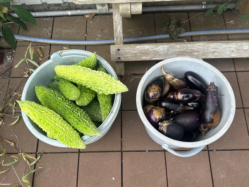 まだ時差ボケが完全には治っていませんが、畑が心配なのでゆり様とやってきました。予想どおり雑草が凄すぎました。ただし四方にスイカの蔓が伸びていますので、ゆり様に慎重にスイカを探してもらいました。いくつか収穫もできて満足です。私はサツマイモの周囲の雑草を取りながら蔓返しをしました。今年は「紅はるか」が少し期待できそうです。旅の疲れとこの暑さでバテバテになり早々に作業を切り上げました。
