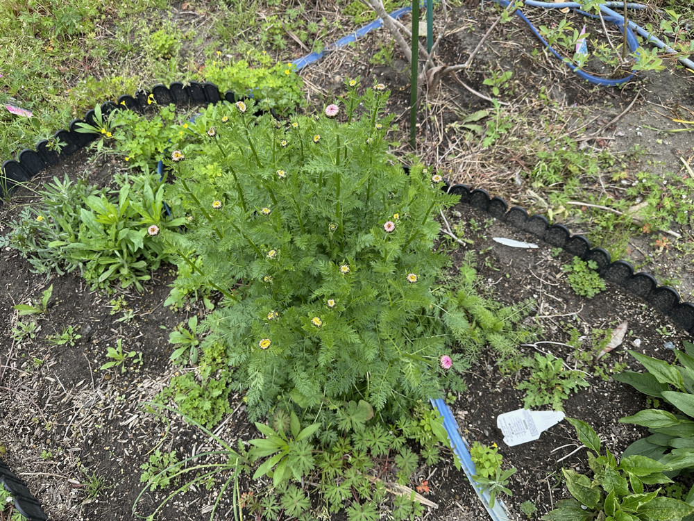 除虫菊はゆり様が昨年苗を植えたのですが、宿根で今年は蕾をたくさん付けています。