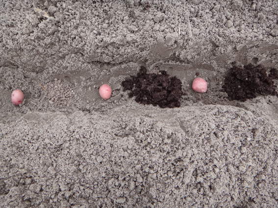 これだけ種芋にします ビニールトンネルの中で淺植えにします