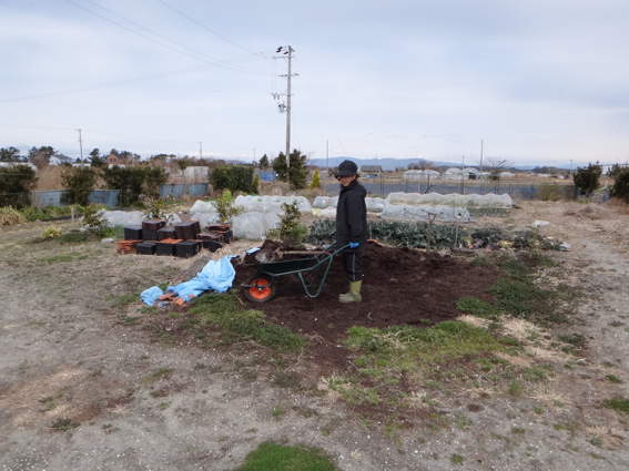 花壇に堆肥を運ぶゆり様