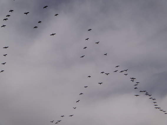 渡り鳥(鴨?)の大群が上空を飛んでいきました