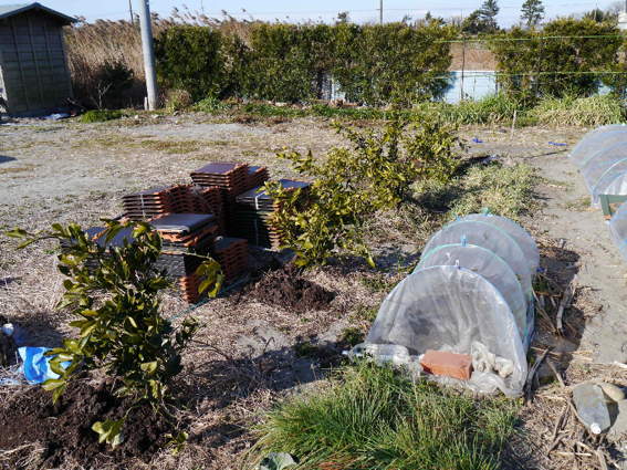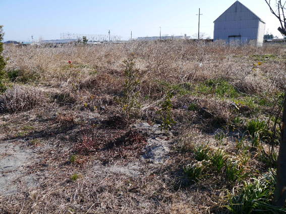 この辺りに椿や山茶花を植えました 隣は全くの荒野です