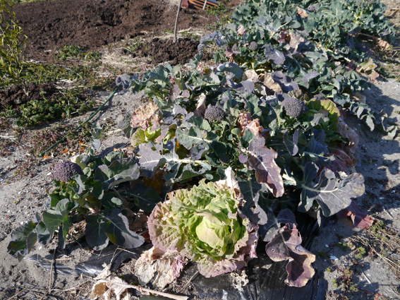 ブロッコリー畑に少しキャベツも植えてあります