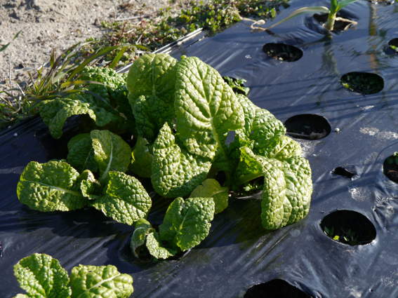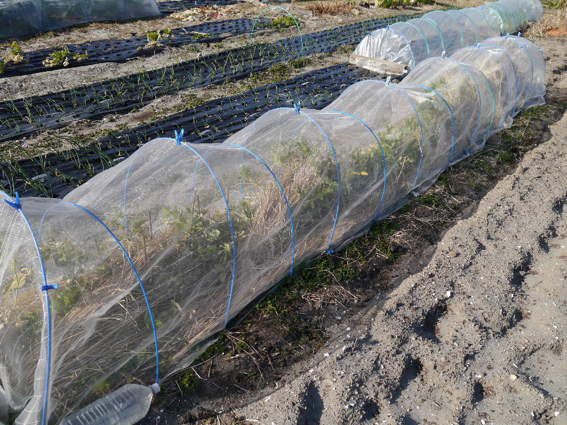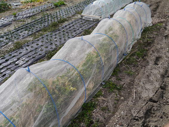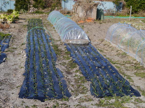 ビニールトンネルの中で促成栽培しています 本当は9月植えなのです