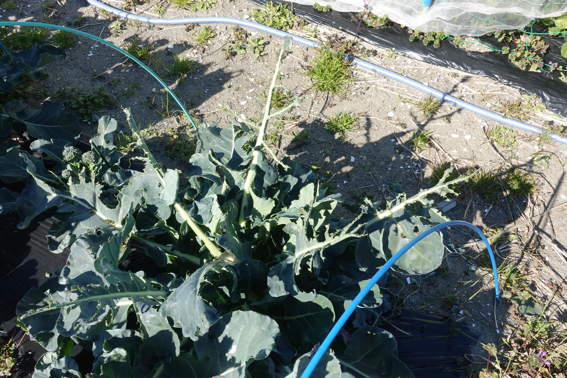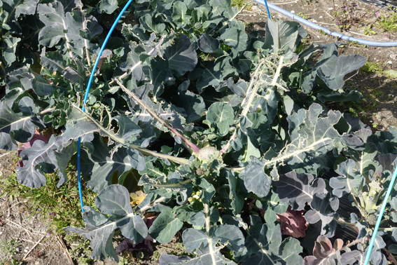 鳥に葉っぱを食べられているブロッコリーです