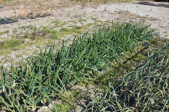 ニンニクも順調に育っています 半分くらいに肥料をあげました