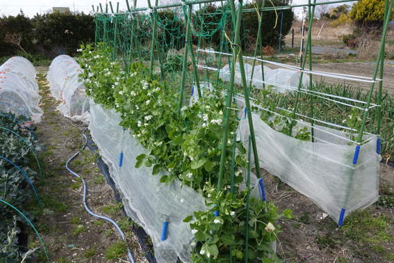 暖冬なのでスナップエンドウも大きくなってます