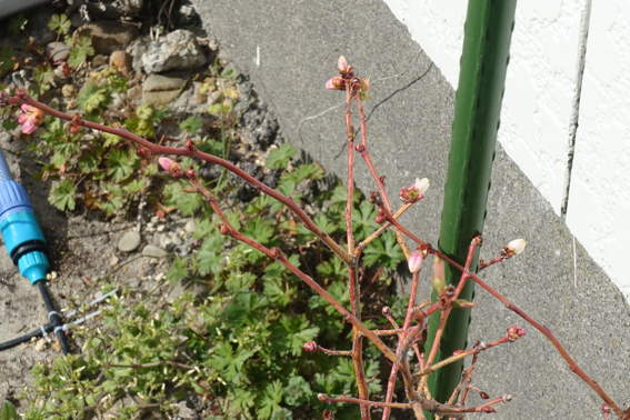 安城から持って来たスイートピーです 塀に絡ませるそうです