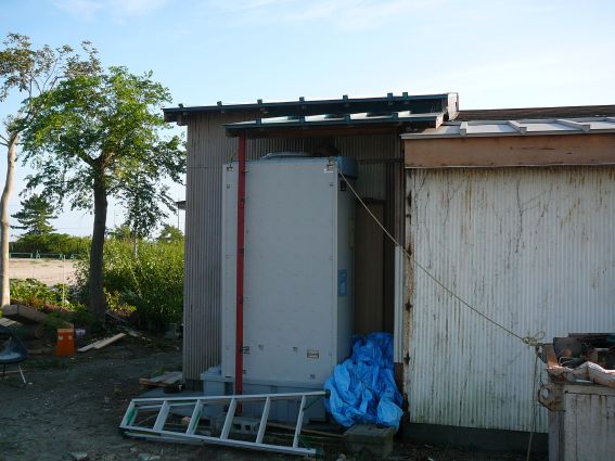 戸外に湯沸かし器を付けてもらいました