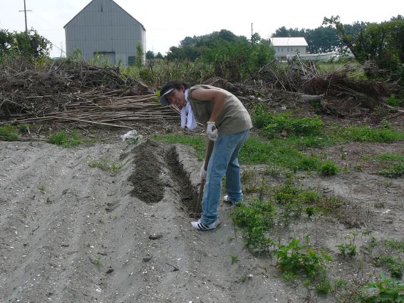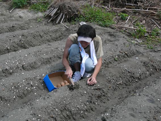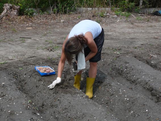 まずジャガイモを植える畝作りから