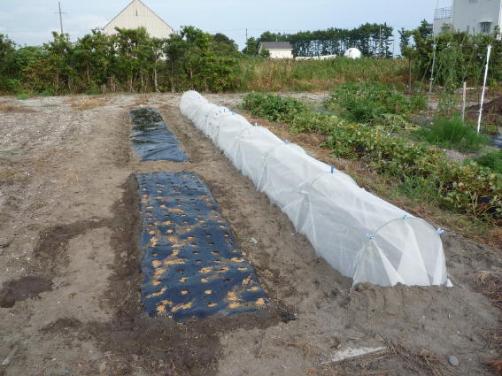 寒冷紗トンネルの中には東京で7月に種を蒔いて育てた