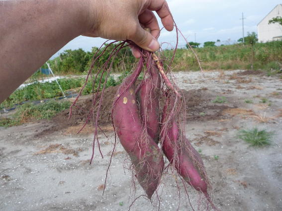 サツマイモをちょいと早取りしました ちょっと小ぶりですが