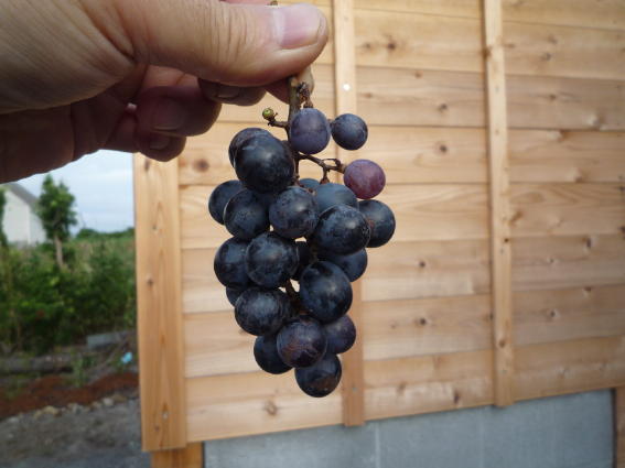 マスカットベリーAが色づきました 今年は一房だけの収穫です