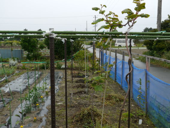 キウイ棚の下にはメロンの苗を2本植えました
