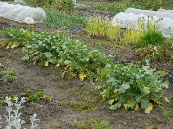 左はチンゲンサイ 真ん中は日野菜蕪 右は小蕪です