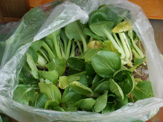 チンゲンサイは少々小さめで虫にも食われていますが(無農薬)