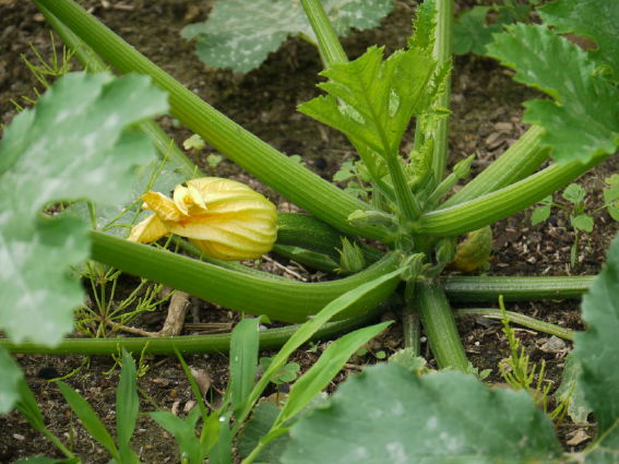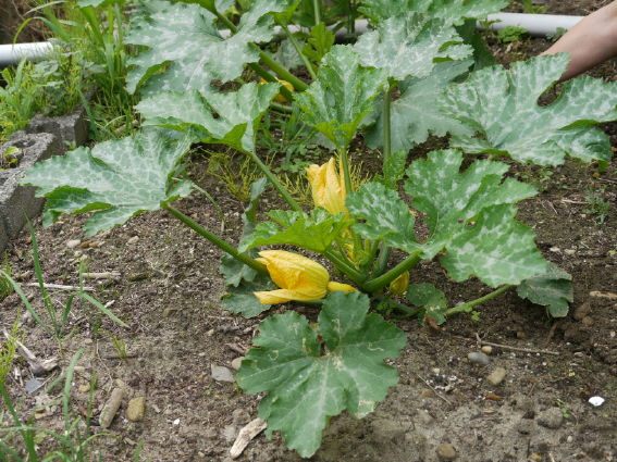ズッキーニの成長が盛んです 黄色のと緑色の実を早取りして