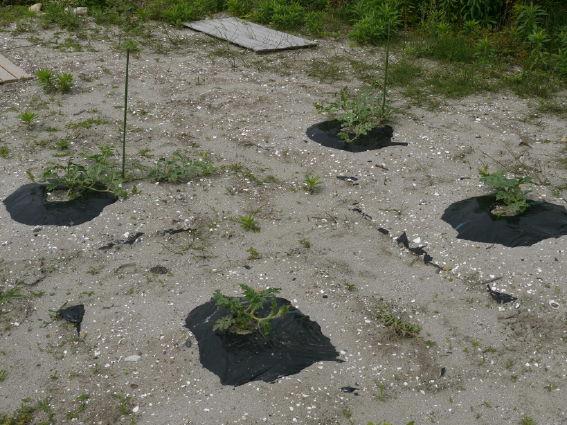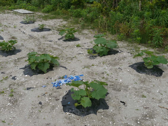 今年はビニールマルチを使わずにサツマイモを育てています