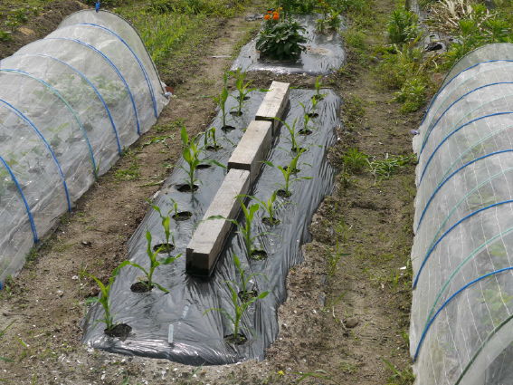 真ん中はピーターコーン 左のトンネルには黒豆を蒔きました