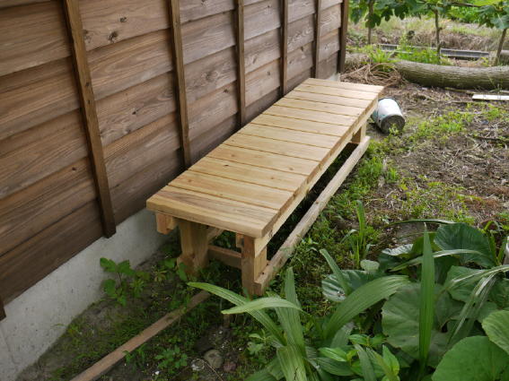 大工の田中さんが暇だからといって ベンチを作って持ってきてくれました