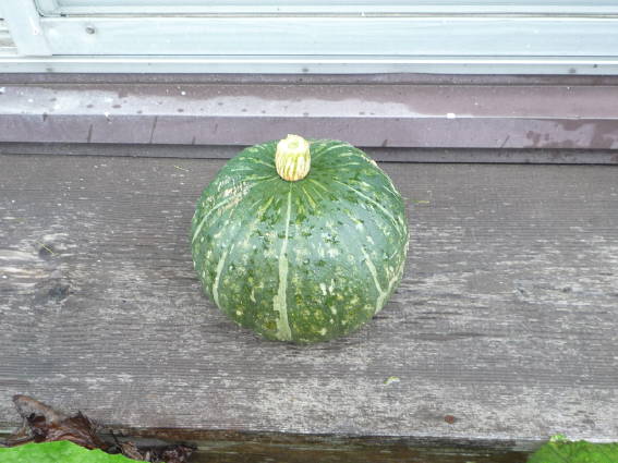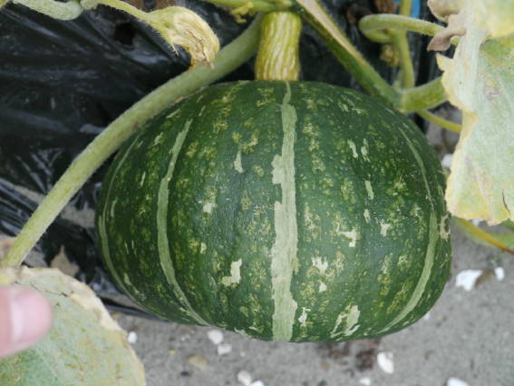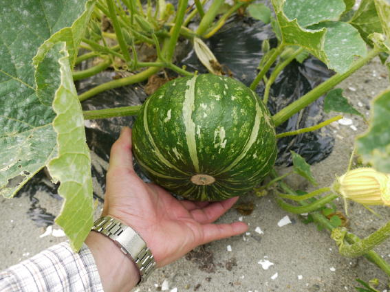2週間前の朝早くに人工授粉したカボチャがこんなに大きくなっていました