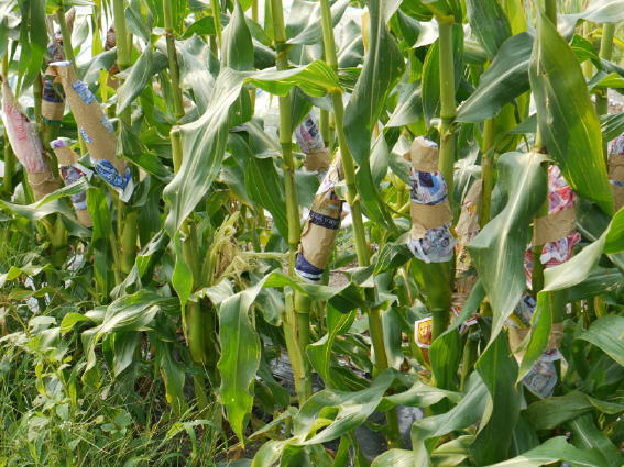トウモロコシの第二陣です 先週オス穂にアワノメイガの幼虫が