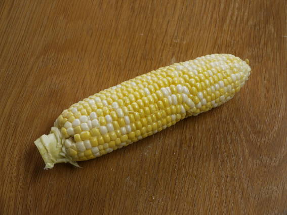 茹で上がったトウモロコシ 下のが唯一の無傷コーン