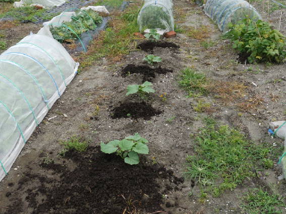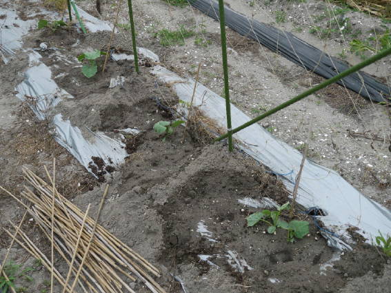 2週間前に種を蒔いたキュウリです 地這いにさせる予定(手抜き)