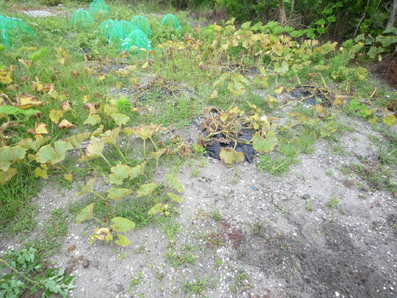 両隣のカボチャ畑もうどん粉病が蔓延しているようです