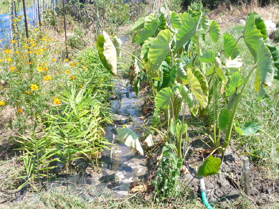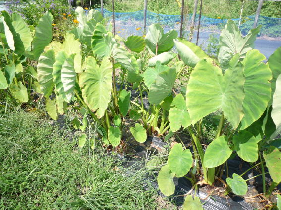 里芋の小芋が地表に出てきています 今年は豊作かも