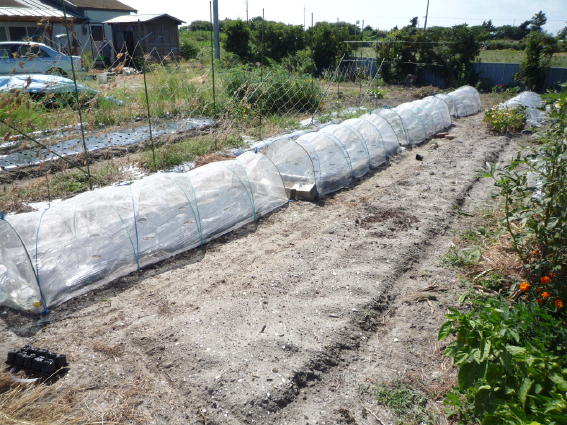 右はミニキャロットとチンゲンサイを蒔いたトンネルです