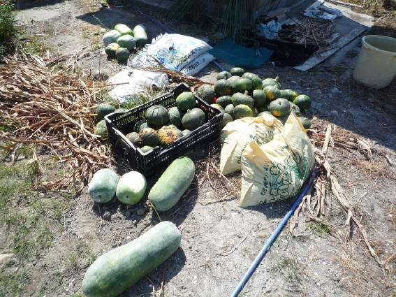 隣のおじさんに貰った冬瓜と 別の隣から「拾ってきた?」カボチャです