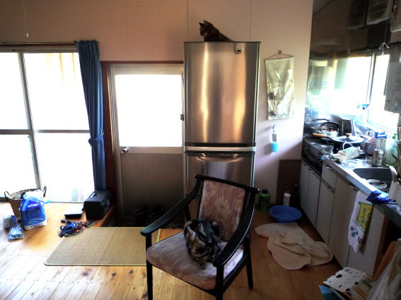冷蔵庫の上で一時の安らぎを得ているのですが