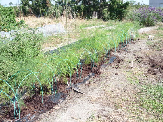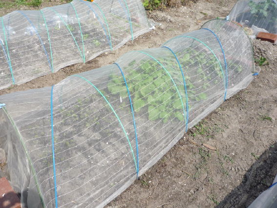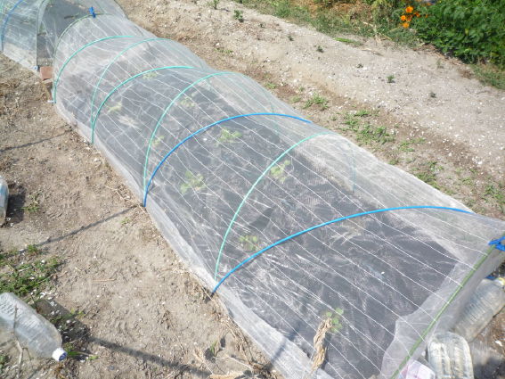 こちらではダイコン、キャベツ、ブロッコリーを防虫トンネルで