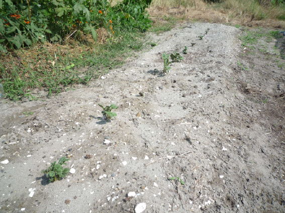 暑さでやられてしまったかも 先週蒔いた白菜は少々発芽しています