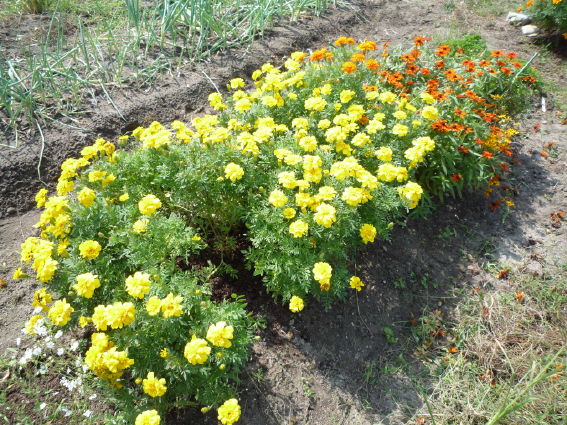 マリーゴールドとジニアです 暑さに強い花たちですね