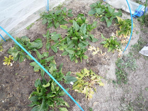 石灰で中和した筈ですが ホウレンソウが酸性土でやられています