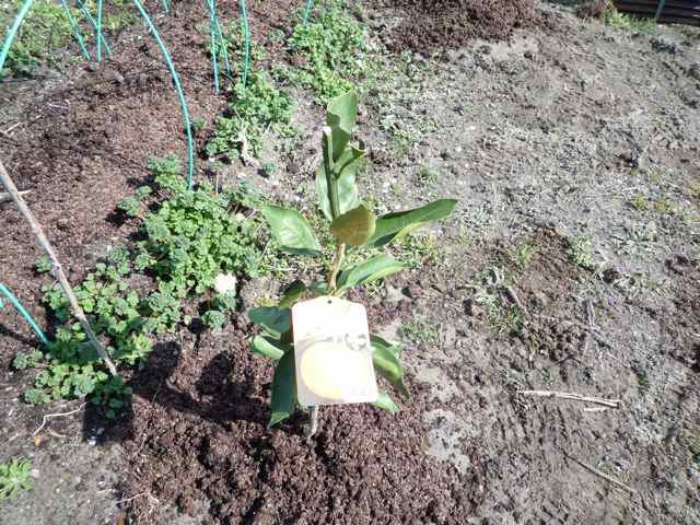 アスパラガス畑の南側にミカンを植えました これは宮川早生という