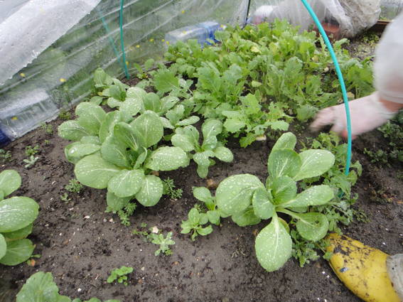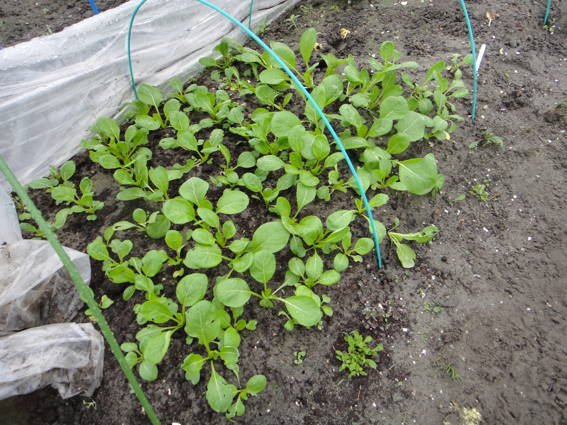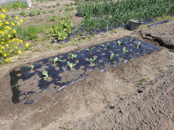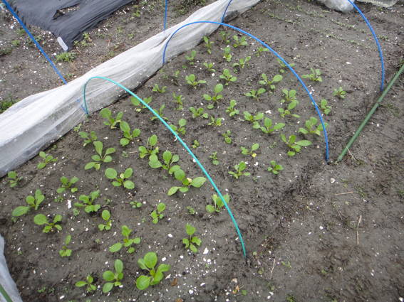 手前はゆり様が先週間引いたコマツナを移植したものです