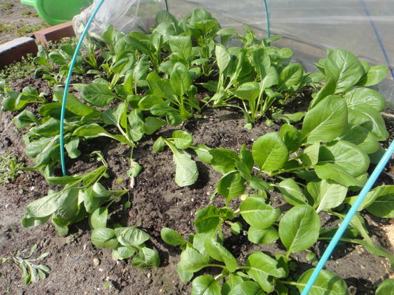 チンゲンサイもでかくなりました 向こうは小蕪です