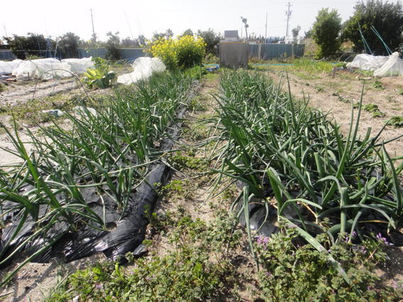 右のニンニクは来月から5月にかけて収穫です