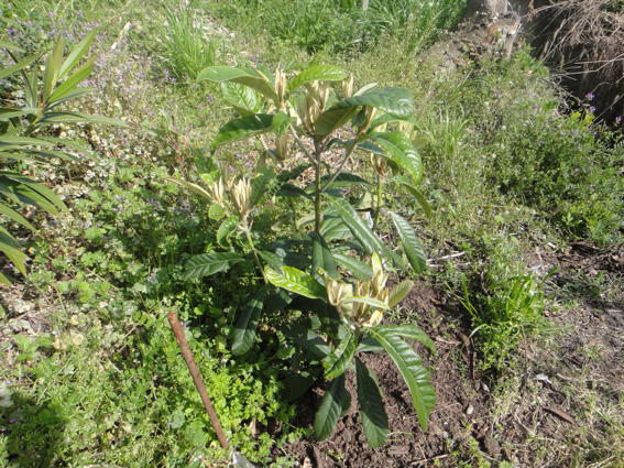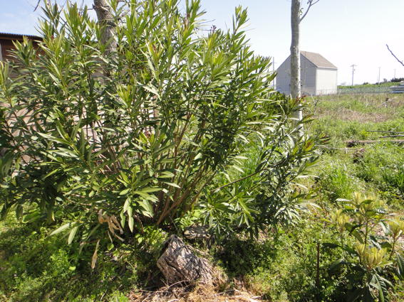 キョウチクトウが立派に大きくなっています 右下はビワです