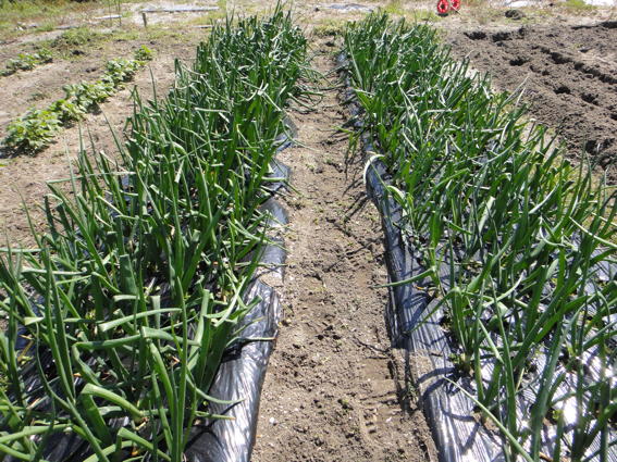 まだ玉が太っていませんがいい感じに育っているタマネギです