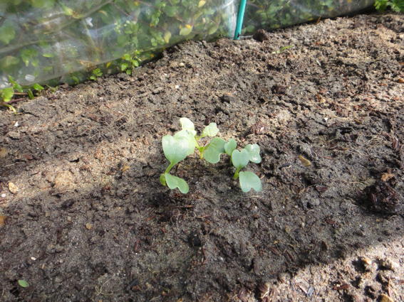 ルッコラとチンゲンサイも芽が出ていました