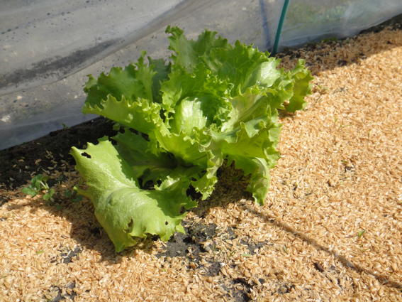 独りぼっちで巻き始めたレタスです このモミの所には人参のタネを